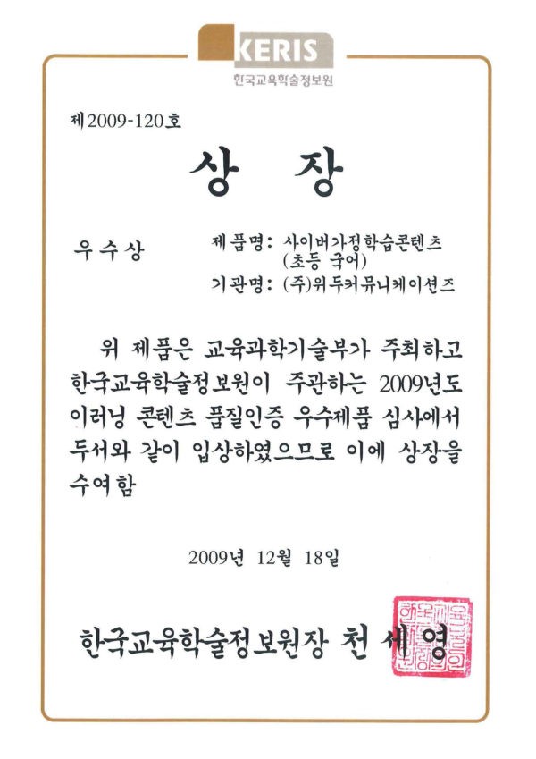 이러닝 콘텐츠 품질 인증 우수 심사 페이지 정보 작성자 WeDu 댓글 0건 조회 6,091회 작성일 19-05-30 19:32 본문 2009-12-18 우수상 제 2009-120호 이러닝 콘텐츠 품질 인증 우수 심사 한국교육학술정보원장 천세영 List Previous이러닝 기업의 수요 창출과 품질 향상 19.05.30 Next제 8회 디지털 이노베이션 대상 19.05.30