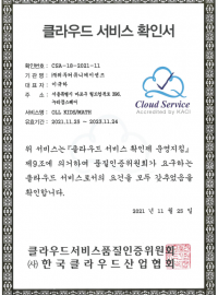 [한국/인증서] OLL KIDS/MATH 클라우드 서비스 확인서