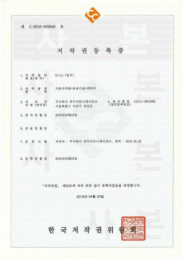 [한국/저작권] 길리 페이지 정보 작성자 WeDu 댓글 0건 조회 5,937회 작성일 19-05-30 19:07 본문 2016-04-22 저작권 C-2016-009840 길리 / 미술저작물>응용미술>캐릭터 List Previous[한국/저작권] 나무트 19.05.30 Next[한국/저작권] 리안의 수학 모험 19.05.30